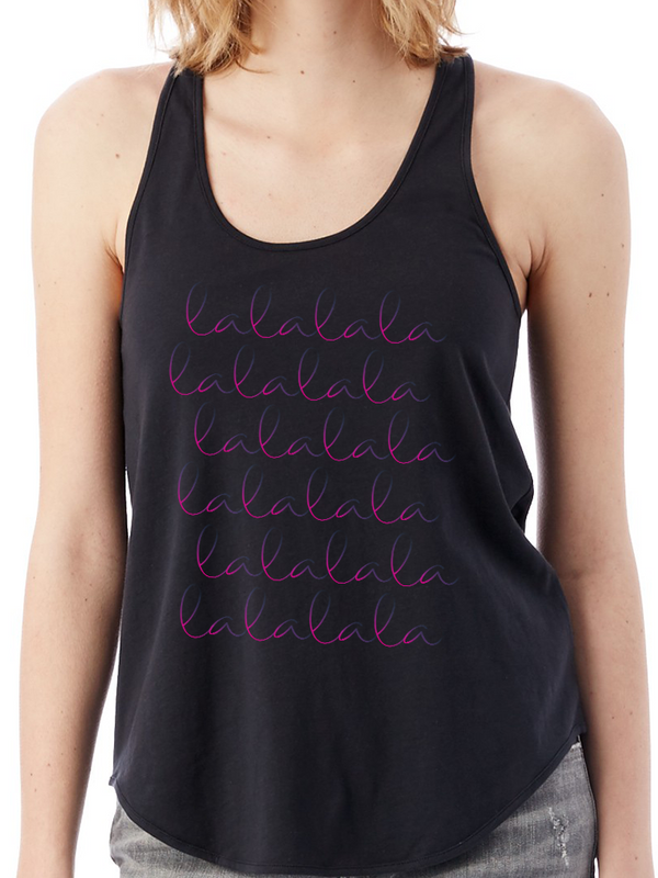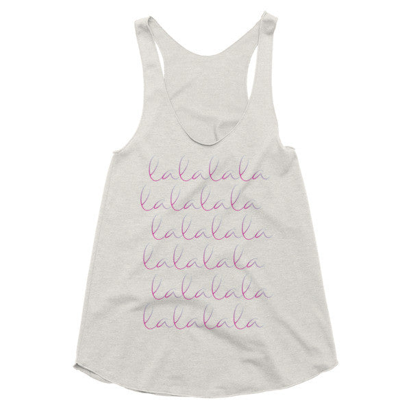 Our flattering La-La tank has a slim racerback in ultra soft Tri-Blend fabric for a vintage feel. • Triblend of polyester, cotton and rayon • Racerback